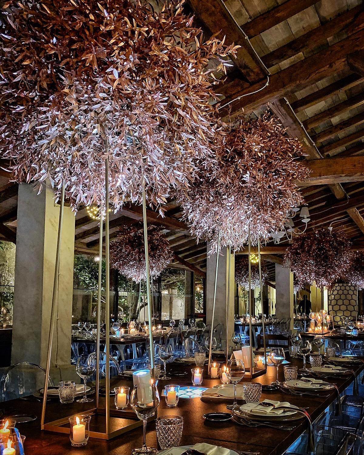 Pensa a tavoli decorati con eucalipto e oro, bicchieri brillanti, candele ovunque, un sottofondo jazz o swing: basta poco per creare un effetto “wow”.